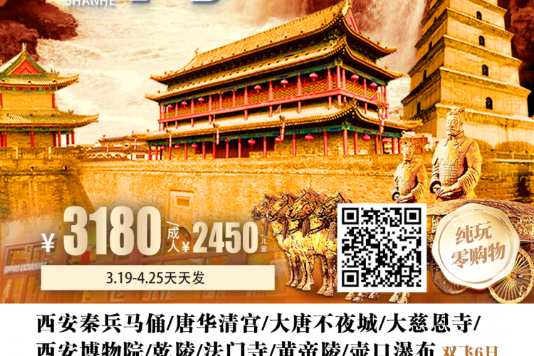 西安秦兵马俑/唐华清宫/大唐不夜城/大慈恩寺/西安博物院/乾陵/法门寺/黄帝陵/壶口瀑布双飞6日
