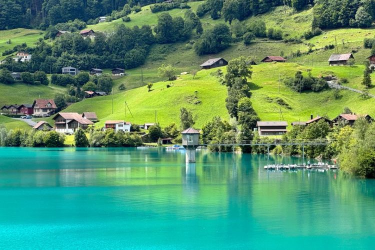 古堡品鉴美酒;湖光山色因特拉肯:因地处图恩湖与布里恩茨湖之间而得名,周边伯尔尼阿尔卑斯名胜众多,是瑞士古老且