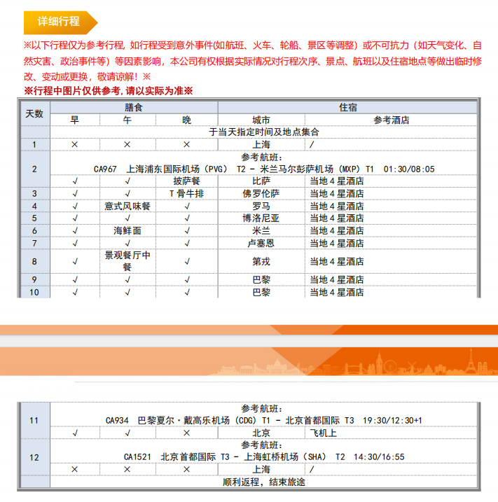 包罗万象-罗马、文艺复兴-佛罗伦萨、浪漫之城-巴黎、时尚之都-米兰