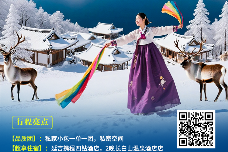 邂逅长白-私家小包团六日游长白山滑雪、雾凇漂流、冰钓烤鱼、长白山北景区、雪地露天温泉、老里克湖景区、雪地摩托车、马拉爬犁、看驯鹿、民俗园精美造型+专业摄影师旅拍、延吉起止双飞6日游